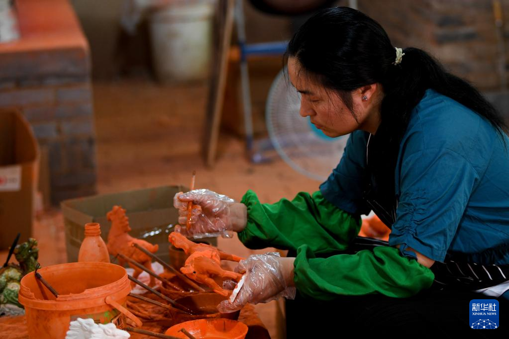 河南省洛陽市朝陽鎮(zhèn)南石山村以生產(chǎn)唐三彩而聞名。近年來,當(dāng)?shù)卣e極引導(dǎo)三彩產(chǎn)業(yè)數(shù)字化建設(shè)工作,推動(dòng)唐三彩燒制技藝傳習(xí)館、唐三彩陶藝博物館、唐三彩文化研學(xué)所等優(yōu)化升級(jí)。目前,南石山村唐三彩產(chǎn)業(yè)的專業(yè)燒制藝人有2000余人、文化企業(yè)68家,年產(chǎn)值達(dá)3.5億元。新華社記者 吳剛 攝