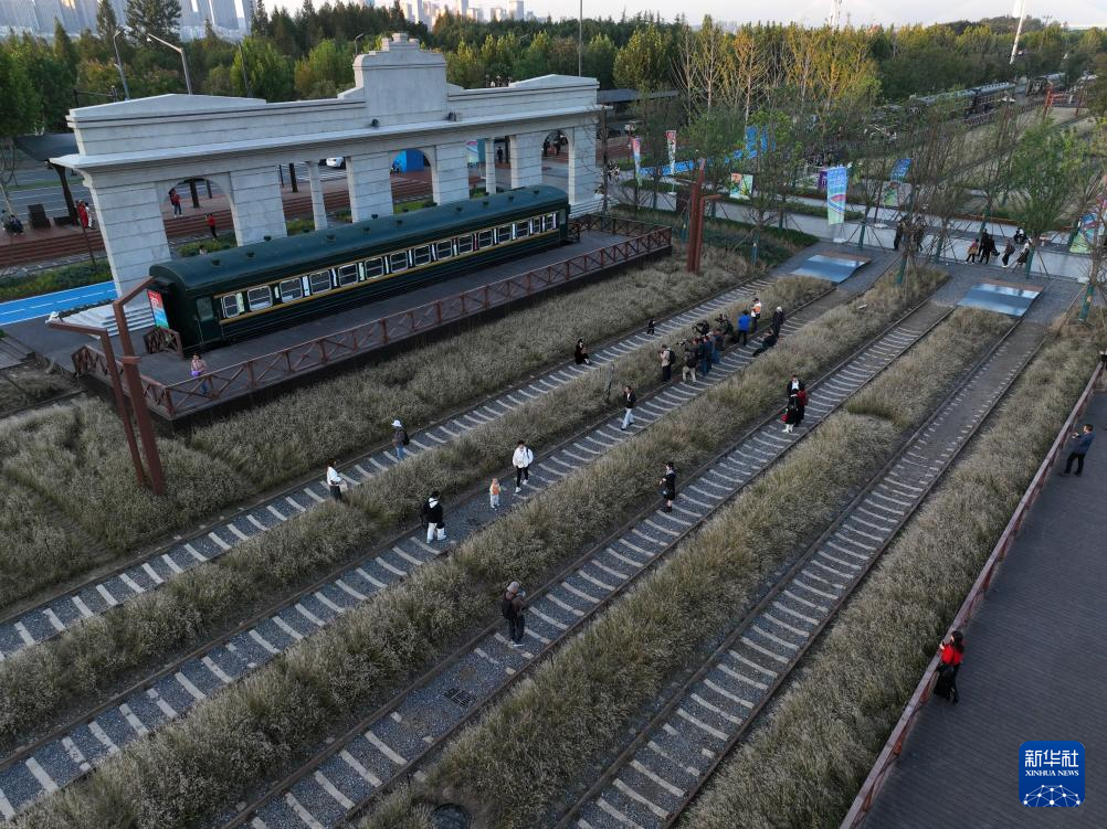 11月6日拍攝的武漢市武昌四美塘鐵路遺址文化公園(無人機(jī)照片)。