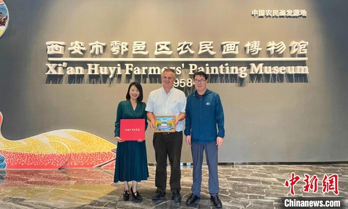 2023年8月,德國游客參觀西安市鄠邑區(qū)農(nóng)民畫博物館。(受訪者供圖)