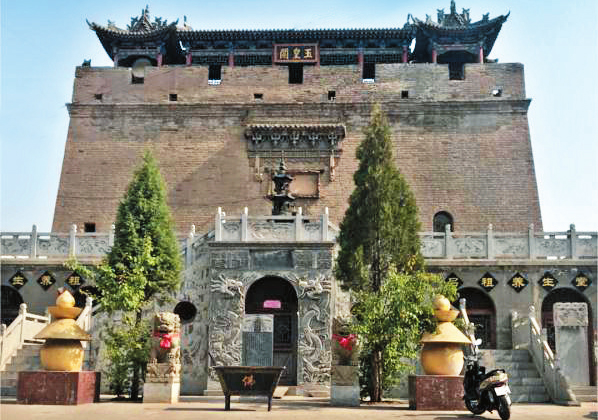 護城樓位于河曲縣文筆鎮(zhèn)北元村北城墻外10米處,明代建筑。據城樓匾額題記載,建于明萬歷年(公元1573年至公元1620年),重修于1996年4月14日。南北長27米,東西寬21米,占地面積567平方米。坐北朝南,為二層磚木結構。一層臺基高3.5米,中部設拱券門,前有石砌臺階相連,券門門額石匾書“鎮(zhèn)虜”二字。匾額上砌垂花門樓,檐下設三踩單翹斗拱。劵門兩側設拱形小窗。二層四周設女兒墻,有玉皇閣一座,建于清乾隆三十一年。殿身面寬三間,進深四椽,單檐硬山頂,五檁無廊式構架,斗拱一斗二升交麻葉。東西為鐘樓、鼓樓。1984年河曲縣人民政府公布其為縣級文物保護單位;2007年6月6日被忻州市人民政府公布為第一批市級文物保護單位;2016年6月6日被山西省人民政府公布為第五批省級文物保護單位。