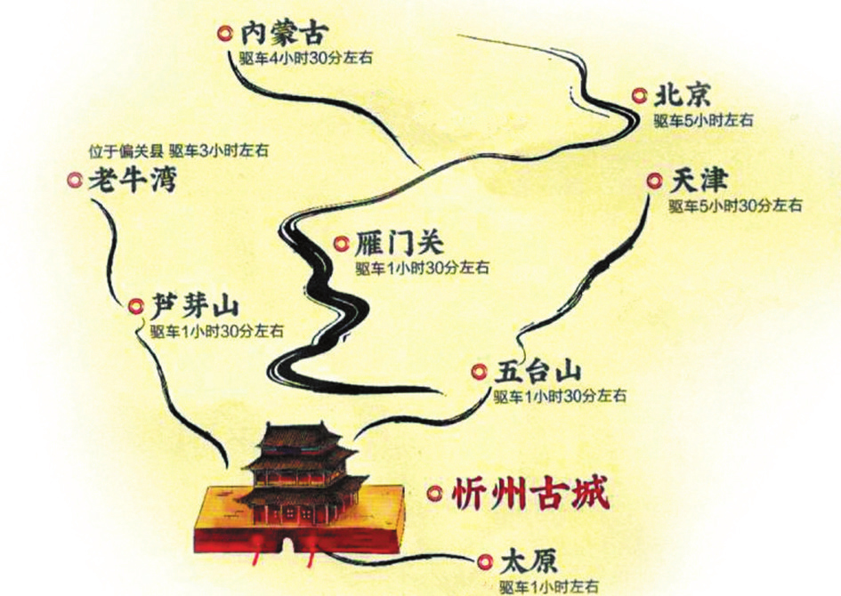 來到這里,你可以站在溝壑縱橫、梁峁起伏的黃土高原,欣賞懸崖峭立、水石相激的晉陜峽谷,也可以在古木參天、濃蔭蔽日的森林公園里散步,在百草茂盛、一望無(wú)垠的高山草甸上仰望星空。你可以游覽世界文化景觀遺產(chǎn)、佛教名山五臺(tái)山,也可以領(lǐng)略秀容、岢嵐、寧化、代州4座悠遠(yuǎn)古城的各有千秋,登攀三關(guān)營(yíng)堡、歷朝歷代的邊塞長(zhǎng)城。你可以在偏關(guān)老牛灣古渡、河曲西口古渡搖櫓渡河,回想晉商的輝煌,也可以身臨夜襲陽(yáng)明堡飛機(jī)場(chǎng)遺址,重溫榮耀,感受歷史的震撼……