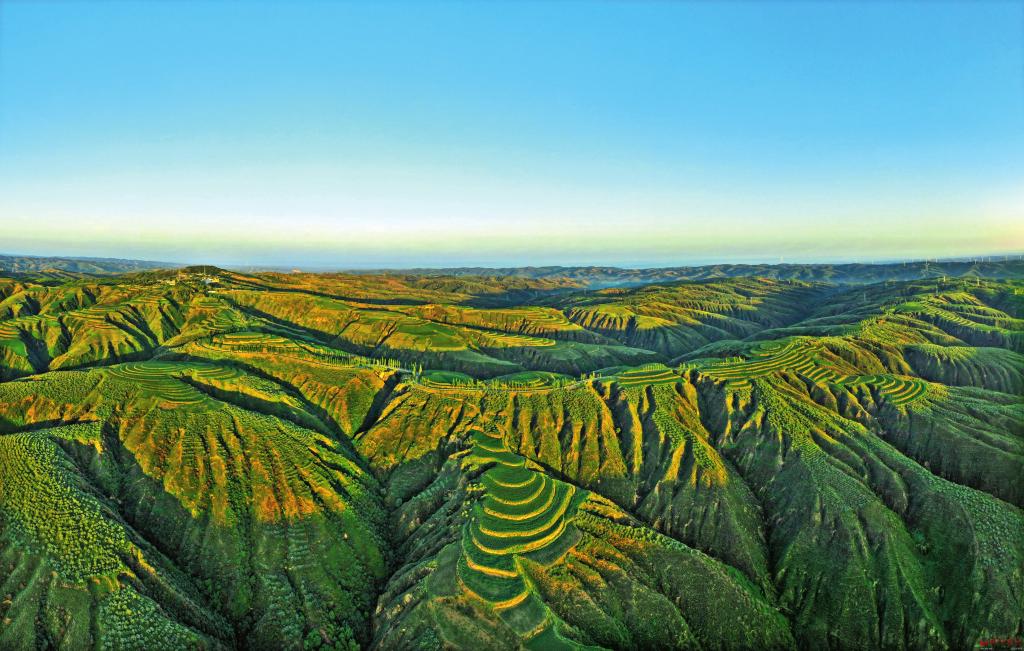 站在趙家溝的山頂看日出是一件賞心悅目的事情。8月4日早晨,當(dāng)朝陽從東方的山巒噴薄而出,在萬丈霞光的映照下,莽原織繡,梁峁吐翠,田疇如畫,生機勃發(fā)。居高臨下看到的夏日晉北高原美景妙不可言,使人陶醉。