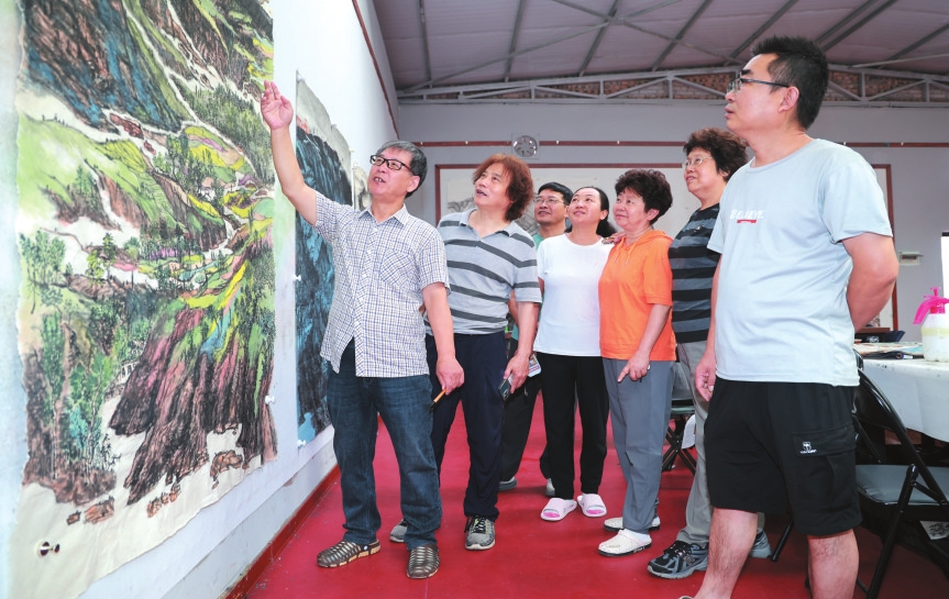連綿的山巒、錯(cuò)落的民居、獨(dú)特的虎斑地貌、古樸的窯洞與層疊的梯田在藝術(shù)家筆下一一蘇醒。陜西女畫(huà)家祝秀琴初次來(lái)到趙家溝便被深深吸引:“這里村落風(fēng)貌保存完好,老樹(shù)、干柴、石頭皆是風(fēng)景,處處入畫(huà)。”在她眼中,趙家溝不僅擁有獨(dú)特的自然稟賦與豐富的旅游資源,其寫(xiě)生產(chǎn)業(yè)鏈的完備更令人贊嘆——從食宿安排到寫(xiě)生用具,從戶外寫(xiě)生點(diǎn)到室內(nèi)畫(huà)室研討,一應(yīng)俱全。