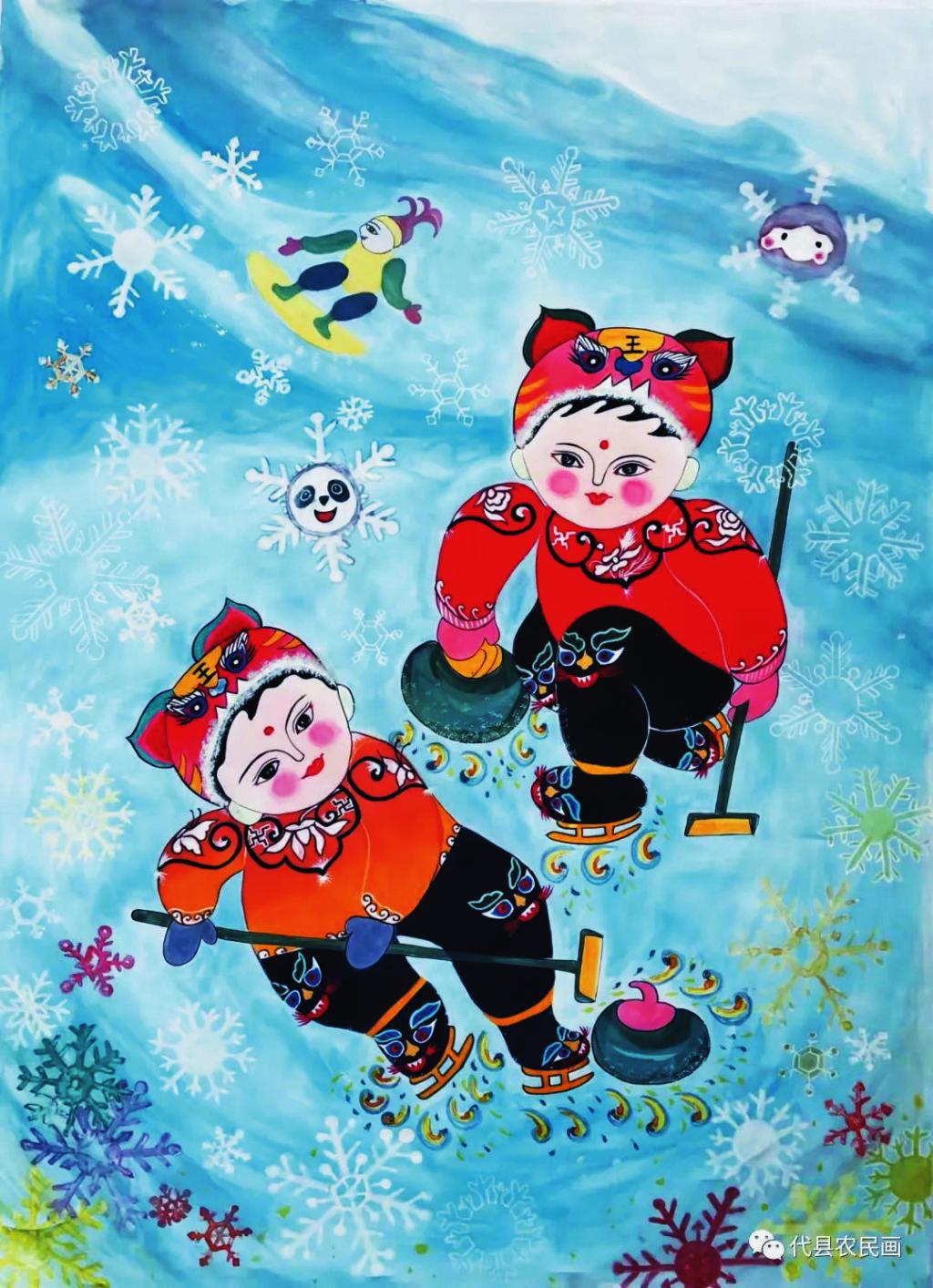 千淘萬漉雖辛苦,吹盡狂沙始到金。這些農(nóng)民畫促進(jìn)會的女畫家為了創(chuàng)作吃盡了苦,費(fèi)盡了心,但也在追求藝術(shù)的路上收獲了許多。丁全愛創(chuàng)作的《寒燕兒》《甜》入展山西省群眾文化惠民工程“美麗鄉(xiāng)村”現(xiàn)代農(nóng)民畫優(yōu)秀作品展,《吉祥五寶》《跤娃》《春拂滹沱》入選山西省脫貧攻堅(jiān)農(nóng)民畫展;戴翠平的《撓閣上來了》被山西省農(nóng)民畫研究會收藏,2020年疫情期間創(chuàng)作的《逆行者》《眾志成城抗疫情》《全球同心抗疫情》均被代縣檔案館收藏;賈永花的《春意盎然》入展山西省群眾文化惠民工程“新農(nóng)村、新氣象”省農(nóng)民畫優(yōu)秀作品展,《農(nóng)家樂》被山西省文化館收藏;祁磊創(chuàng)作的《盛世鼓舞》被評為山西省群眾文化惠民工程“新農(nóng)村、新氣象”省農(nóng)民畫最佳作品;在中國農(nóng)民畫研究會2022年“虎虎生威慶冬奧”專題云展活動中,丁全愛、王粉玲、戴翠平、孫瑰峰、戴永蓮、柳尚艷六位畫家的作品被選中入展……她們的作品先后在《山西日報(bào)》《忻州日報(bào)》專欄刊登,逐漸被省內(nèi)外的行家和廣大農(nóng)民畫愛好者所認(rèn)可,釋放出濃烈的彩墨馨香。(劉 睿)