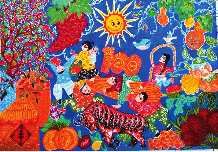 在代縣農(nóng)民畫促進(jìn)會黨支部和主席團(tuán)的引領(lǐng)下,這些女畫家積極參與促進(jìn)會組織的各種交流和研討活動,不斷汲取藝術(shù)養(yǎng)分,深入探索研究農(nóng)民畫的創(chuàng)作技巧,使自己的繪畫技藝逐漸得到提升。她們特別注重借鑒代縣刺繡、面塑、剪紙等民間技藝的創(chuàng)作方法,從各種技藝當(dāng)中吸納有利于農(nóng)民畫創(chuàng)作的元素和營養(yǎng)。