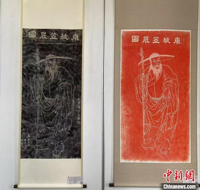 11月6日,“渾涵光芒 雄視百代——東坡古籍閱讀欣賞書影展”在海南省圖書館開展。圖為《東坡笠屐圖》拓片。中新網(wǎng)記者 張茜翼 攝