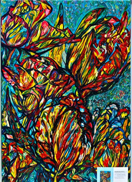 此次分享會(huì)還展出了孫寬的油畫作品郁金香系列十余幅。她的油畫藝術(shù)風(fēng)格,以強(qiáng)烈的色彩和抒情性著稱,受現(xiàn)代派,后現(xiàn)代派繪畫影響,擅長(zhǎng)通過冷色調(diào),尤其是藍(lán)色表達(dá)情感,作品如《落地生根》《藍(lán)色突圍》《核》等被評(píng)為詩性繪畫。