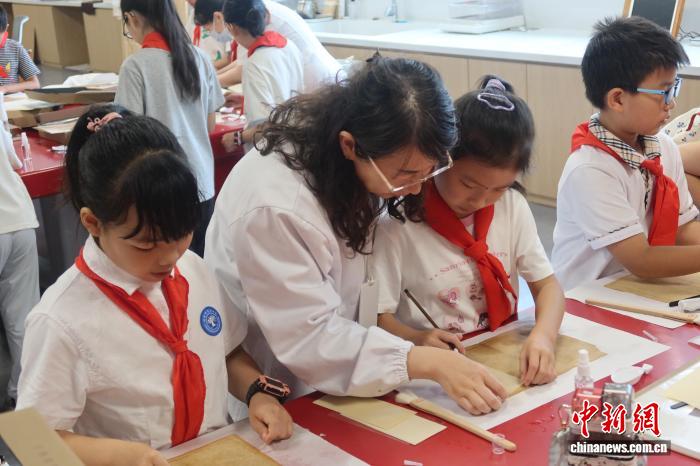 8月12日,青少年學(xué)生在浙江省檔案館了解檔案修復(fù)技術(shù)。 孫琳茹 攝