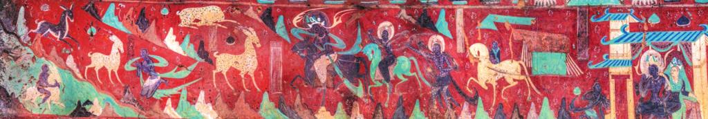 敦煌莫高窟第257窟的《鹿王本生圖》,是北魏時期的橫卷式壁畫,也是同類題材中保存最完整的連環(huán)畫,講述一只美麗的九色鹿王,救了一個不慎落入水中快被淹死的人,然而卻被此人出賣的故事。1981年上海美術電影制片廠推出的經(jīng)典動畫片《九色鹿》,就是以此壁畫為原型。