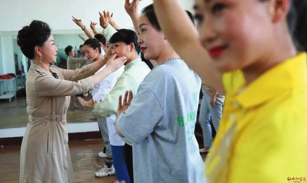 郝云婧在指導(dǎo)學(xué)員形體動(dòng)作