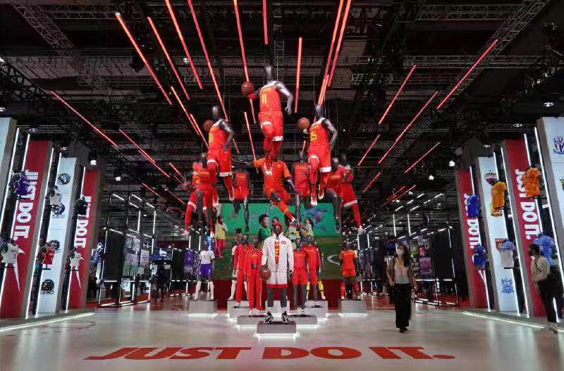 這是11月7日在進(jìn)博會消費(fèi)品展區(qū)拍攝的耐克展臺。新華社記者 李任滋 攝