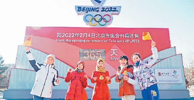2月4日,河北張家口經(jīng)開區(qū)的市民共同慶祝2022北京冬奧會(huì)開幕倒計(jì)時(shí)一周年。畢瑞翔攝(人民視覺)