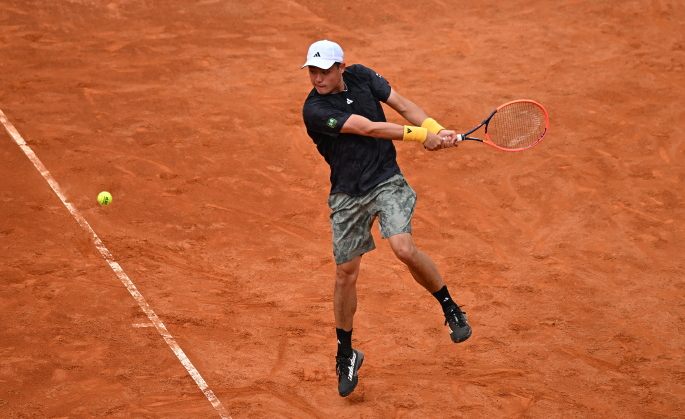 5月23日,吳易昺在比賽中回球。圖片來自ATP官方社交媒體賬號