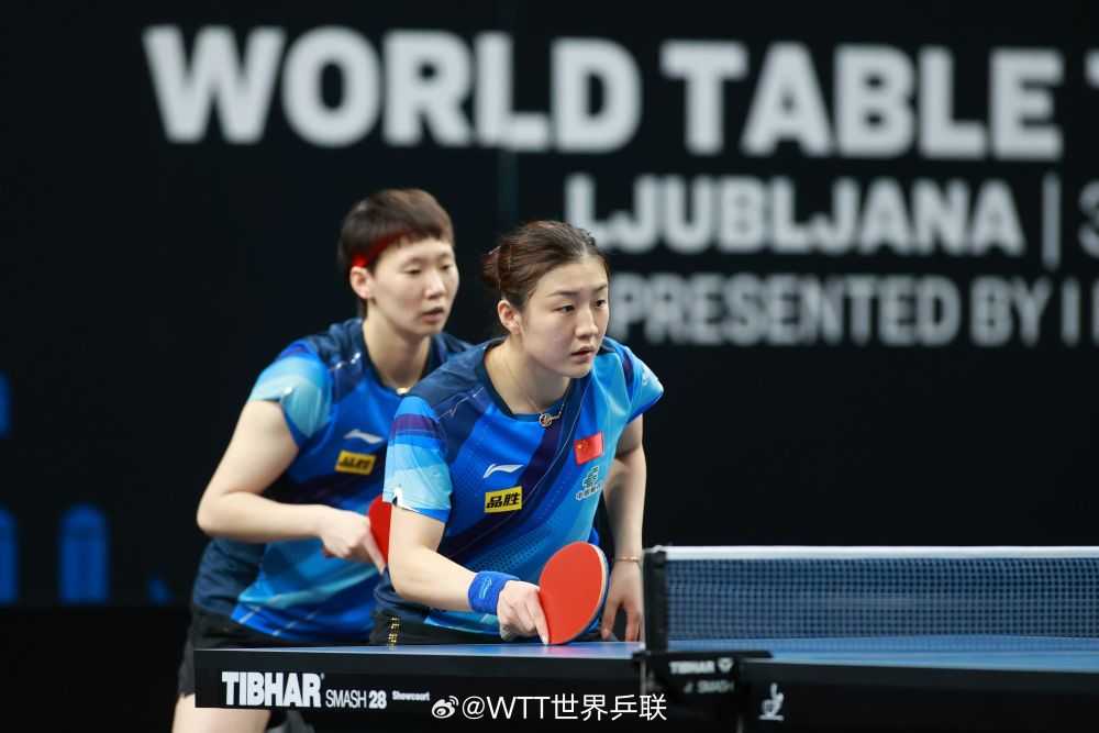 陳夢(前)、王曼昱在比賽中。圖片來自WTT社交媒體官方賬號