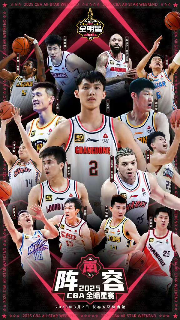 在最新公布的陣容名單中,南、北區(qū)明星隊陣容備受關注。其中北區(qū)明星隊首發(fā)陣容為周琦、曾凡博(北京)、楊瀚森(青島)、趙睿(新疆)、趙繼偉(遼寧)。替補球員包括張寧、哈米杜·迪亞洛(山西)、高詩巖(山東)、王睿澤(青島)、韓德君(遼寧)、鄒雨宸(北控)、姜偉澤、多米尼克·瓊斯(吉林)、林庭謙(天津)、艾德蒙·薩姆納(四川)。