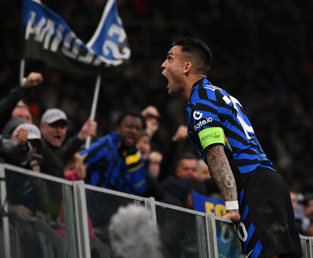 4月16日,國際米蘭隊(duì)球員勞塔羅·馬丁內(nèi)斯慶祝進(jìn)球。新華社發(fā)(阿爾貝托·林格利亞攝)
