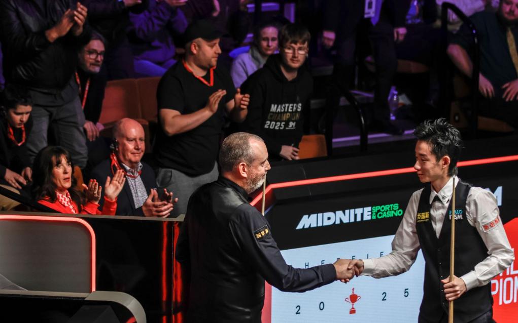 吳宜澤(右)在賽后與對(duì)手握手。圖片來源于世界斯諾克巡回賽(WST)官網(wǎng)