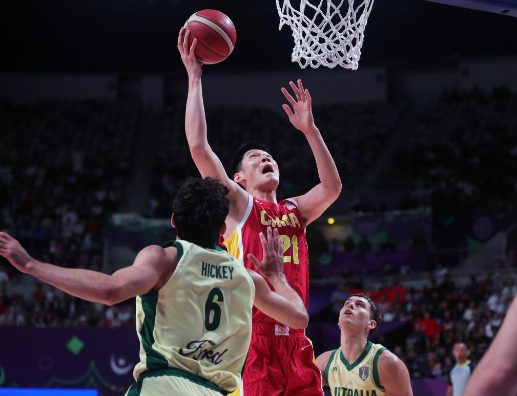 決賽一開始,胡金秋快攻上籃得手,開啟中國隊的得分。澳大利亞隊迅速還以一記三分,隨后雙方比分交替上升。首節(jié)倒數(shù)第三分鐘,胡明軒內(nèi)外線連續(xù)得分幫助中國隊拉開分差,同時憑借在罰球線上的穩(wěn)定發(fā)揮,中國隊以25:17結束首節(jié)。