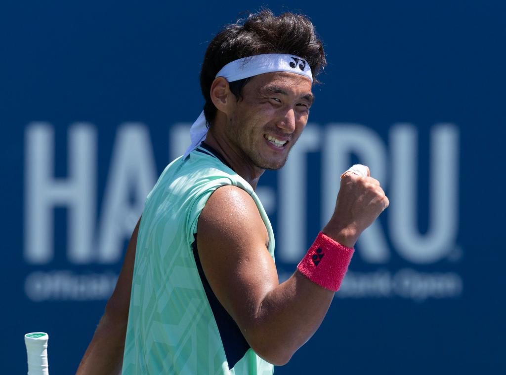 7月28日,中國(guó)選手布云朝克特在比賽后慶祝勝利。當(dāng)日,在多倫多舉行的2025年加拿大國(guó)家銀行網(wǎng)球公開賽男單首輪比賽中,中國(guó)選手布云朝克特2比0戰(zhàn)勝捷克選手科普里瓦,晉級(jí)第二輪。新華社發(fā)(鄒崢攝)