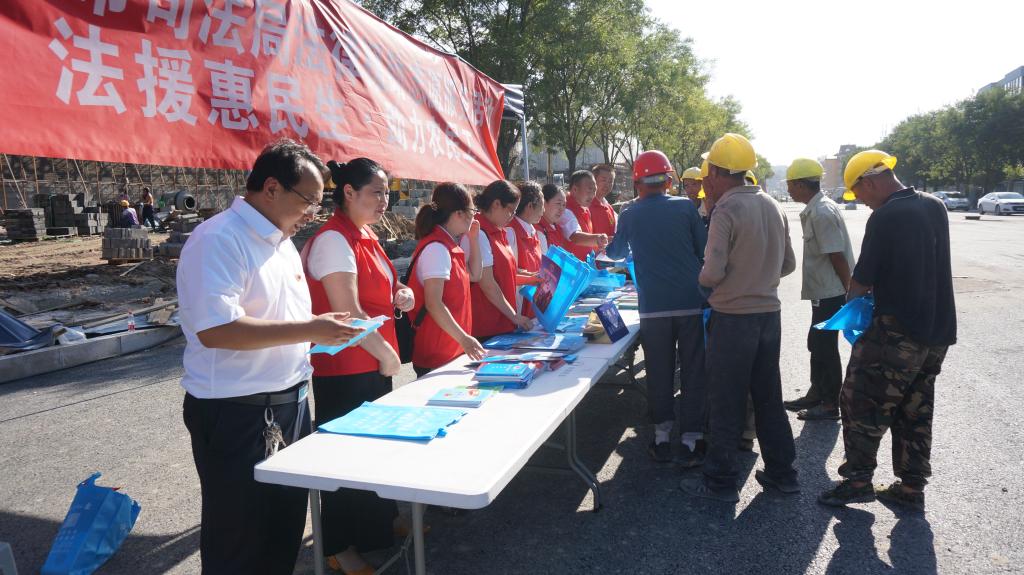 為深入貫徹落實(shí)習(xí)近平新時代中國特色社會主義思想和黨的十九大及十九屆二中、三中、四中全會精神,貫徹落實(shí)《保障農(nóng)民工工資支付條例》和國家、山西省關(guān)于農(nóng)民工服務(wù)工作的部署,切實(shí)加強(qiáng)我市農(nóng)民工安全生產(chǎn)意識,提高農(nóng)民工的維權(quán)意識和維權(quán)能力,8月13日下午,忻州市司法局組織市法律援助中心、公證處、律師事務(wù)所、司法鑒定中心組成法律援助志愿服務(wù)隊(duì),走進(jìn)忻州古城建筑工地現(xiàn)場,開展了“法援惠民生·助力農(nóng)民工”法律援助志愿服務(wù)活動。