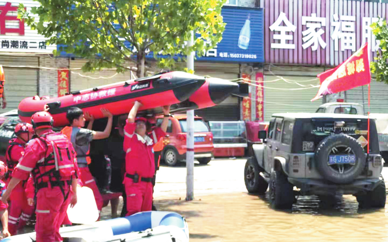 為完成好這次救援任務(wù),該服務(wù)隊準(zhǔn)備了救生衣、救生圈、發(fā)電機(jī)、迷霧機(jī)、救援繩、急救箱、防疫物品等充足的保障物資。24日一早,服務(wù)隊抵達(dá)鄭州,之后他們在主管部門統(tǒng)一指揮下展開積極救援。 (王國棟 張蓉 攝影報道)