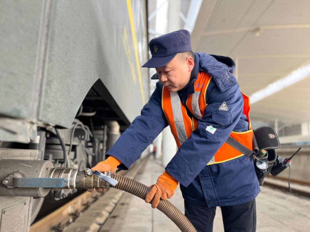 作為山西境內(nèi)唯一的通過車吸污作業(yè)點,太原南站吸污作業(yè)點全年無休,承擔(dān)著通過太原南站的普速、動車、高鐵的吸污作業(yè)。春運期間,吸污工作量加大,除去臨時加增的吸污作業(yè)任務(wù),每天從早上7點至夜間12點,固定有14輛列車需要進行吸污作業(yè)。
