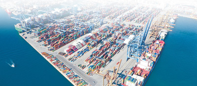 由中國(guó)遠(yuǎn)洋海運(yùn)集團(tuán)運(yùn)營(yíng)的希臘比雷埃夫斯港俯瞰圖。新華社記者 吳 魯攝