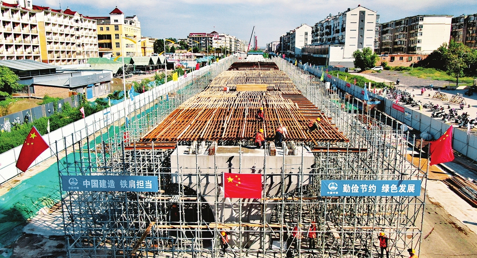 10月2日,臨汾市五一路快速通道工程西段,施工人員全力奮戰(zhàn),模板支撐體系的搭建已初步成型。據(jù)了解,施工人員將利用國慶假期,完成200米的模板支撐體系的搭建工作,用辛勤的勞動和舞動的青春為城市發(fā)展添磚加瓦。(本報(bào)記者 王瑞瑞 攝)