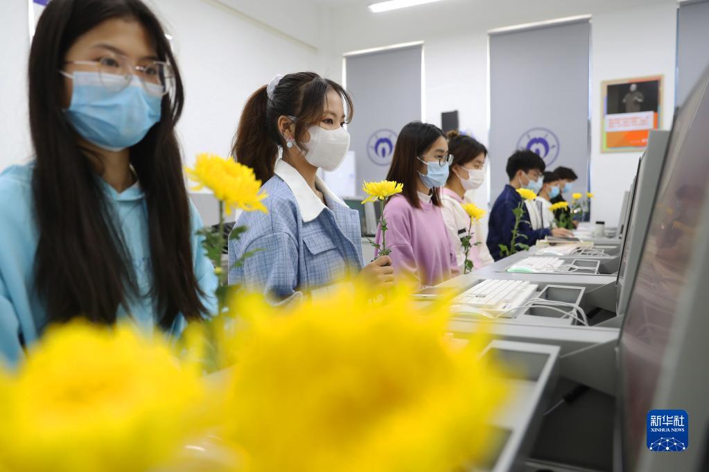 4月4日,在湖南省衡陽市南華大學(xué)經(jīng)濟(jì)管理與法學(xué)學(xué)院,同學(xué)們參加網(wǎng)上祭英烈活動(dòng)。