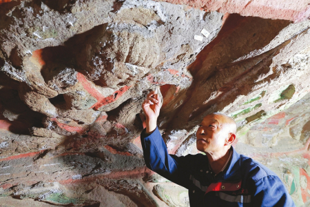 “我們?cè)谶@里修復(fù)的每一件佛像、雕刻,都是對(duì)歷史的致敬,只有帶著感情和責(zé)任去修復(fù),才能做好?!?月4日上午,記者來(lái)到云岡石窟第10窟時(shí),云岡研究院石質(zhì)文物保護(hù)修復(fù)中心的工作人員趙斌正在腳手架上專注地工作著。憑著對(duì)文物修復(fù)的熱愛(ài)與執(zhí)著,趙斌自2012年加入修復(fù)團(tuán)隊(duì)以來(lái),每天早出晚歸精心修復(fù)每一件文物,成為圈內(nèi)人人皆知的行家里手。他說(shuō),“對(duì)一個(gè)病害區(qū)的修復(fù),可能需要一個(gè)月甚至幾個(gè)月的時(shí)間,而且修復(fù)工作中間還不能有過(guò)長(zhǎng)的停滯?!睂?duì)此,趙斌并不覺(jué)得枯燥,“工作中各個(gè)修復(fù)師會(huì)相互交流請(qǐng)教,看到殘損的雕像每天在變好,聽(tīng)到游客們的贊許,都讓我感到充實(shí)和滿足?!?/p>