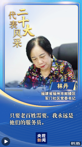 “二十大代表風(fēng)采”一起來(lái)認(rèn)識(shí)福建省福州市鼓樓區(qū)軍門(mén)社區(qū)黨委書(shū)記林丹。