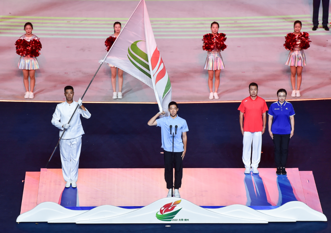 富有地域特色的暖場(chǎng)表演過(guò)后,在一萬(wàn)多名現(xiàn)場(chǎng)觀眾聲震云霄的倒計(jì)時(shí)中,開(kāi)幕儀式正式開(kāi)始。國(guó)旗和會(huì)旗入場(chǎng)儀式后,各代表隊(duì)運(yùn)動(dòng)員、教練員在引導(dǎo)員和執(zhí)旗手的引導(dǎo)下,闊步入場(chǎng)。大同和朔州作為東道主,壓軸亮相,得到了觀眾的熱烈歡呼。之后,升國(guó)旗儀式和升會(huì)旗儀式莊嚴(yán)進(jìn)行,山西省第十六屆運(yùn)動(dòng)會(huì)宣布開(kāi)幕。