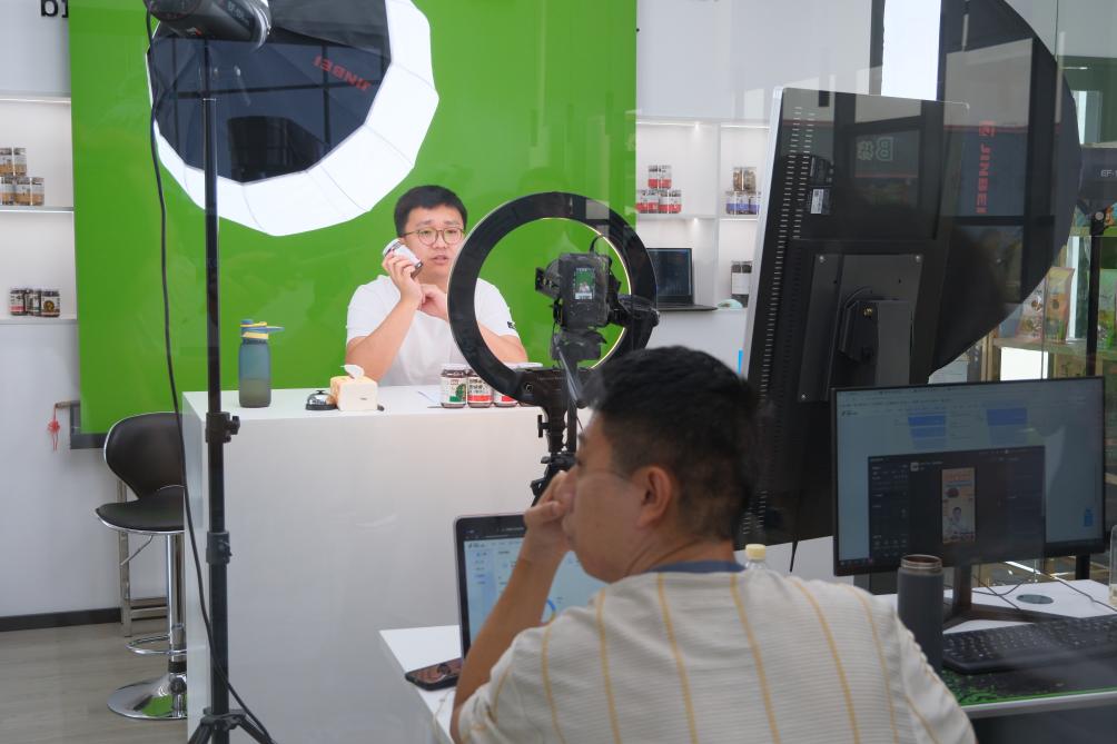 9月6日,銷售人員正在德祥實業(yè)有限公司內(nèi)進行電商直播。新華社記者 趙鑫虎 攝
