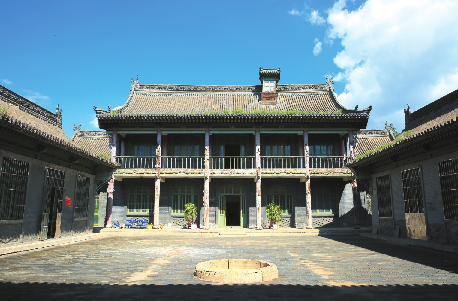 周玳官邸位于代縣上館鎮(zhèn)東南街村周家巷11號(hào),建于1930年,坐北朝南,占地面積3996平方米。二進(jìn)院落布局,中軸線上建有南房、過(guò)廳和正房(二層為藏書(shū)樓),兩側(cè)為門(mén)樓、東西配房及耳房,均為硬山頂磚木結(jié)構(gòu)。院西設(shè)花園,建六角亭1座。