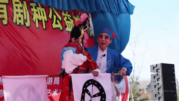 陽(yáng)春三月,在太原古縣城,一出太原秧歌《劉三推車(chē)》正在生動(dòng)上演,“農(nóng)夫”和“小仙女”在臺(tái)上一唱一和,游客們?cè)谂_(tái)下和著春風(fēng)看得入迷。