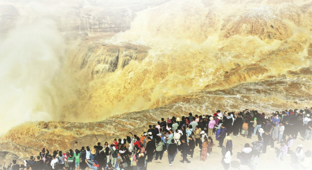 “壺口”的稱謂,最早見(jiàn)于《尚書·禹貢》中,如“既載壺口,治梁及岐”“壺口、雷首,至于太岳”,都與傳說(shuō)中大禹治水的路線與策略有關(guān),壺口是大禹治水的始發(fā)之地。黃河壺口瀑布旅游區(qū)是國(guó)家5A級(jí)旅游景區(qū),是中國(guó)第二大瀑布,全世界最大的黃色瀑布。站在壺口觀景臺(tái)往上看,只見(jiàn)洶涌的黃河水簇?fù)碇?、吶喊著撲到眼前,其?shì)如千軍萬(wàn)馬,漫山遍野般涌來(lái),到了壺口,那一排排的巨浪在翻著水花馳騁飛奔中,突然墜入深坑,發(fā)出了震耳的嘶鳴聲,濺起了漫天水霧,再簇?fù)碇枷蜻h(yuǎn)方……而此時(shí)的你,只會(huì)感覺(jué)到大自然的偉岸和自己的渺小。