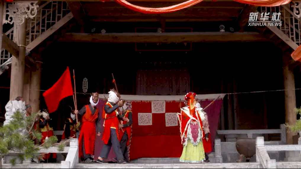 地處武陵山區(qū)的重慶市酉陽(yáng)土家族苗族自治縣,農(nóng)歷五月迎來(lái)水稻插秧后的農(nóng)閑期。忙完插秧工作的陳永霞、冷定祥,在田埂上一邊休息一邊比劃起新劇目的表演動(dòng)作。