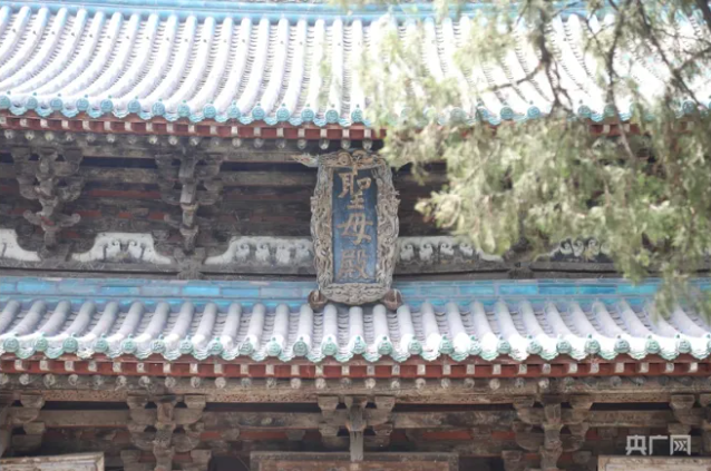 外觀玲瓏似涼亭——獻殿。獻殿是給圣母殿邑姜供奉祭品的享堂,始建于金大定八年(1168),明萬歷二十二年(1594)重修。獻殿高9.75米,其梁架節(jié)省材料且堅固,斗拱結構疏朗,外觀玲瓏似涼亭。