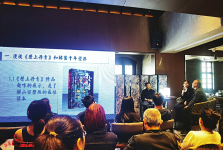 這場講座備受文博迷們關(guān)注,預告一經(jīng)發(fā)布,便達到報名滿額的狀態(tài)。當日,現(xiàn)場更是座無虛席,不乏默默站著聆聽的觀眾。專家們帶領(lǐng)大家穿越千年時光,從漢魏墓室壁畫開始,將壁畫的線條、配色、技術(shù)、布局等一一揭曉。史宏蕾教授從平陸縣棗園漢墓壁畫、大同沙嶺墓、太原婁睿墓講起,壁畫上的鑿井青龍、白虎和玄武形象、還原農(nóng)業(yè)生產(chǎn)景象的牛耕壁畫、一對墓主人夫婦的畫作以及宰羊圖……這些畫作線條優(yōu)美、故事豐富、將當時的生活狀態(tài)表現(xiàn)得活靈活現(xiàn)。史宏蕾教授表示,古代畫匠可以被稱為“巨匠”“藝術(shù)家”,他們的審美、原創(chuàng)力都堪稱為領(lǐng)先,很多時候她更愿意稱這些畫匠為“丹青專職畫家”。
