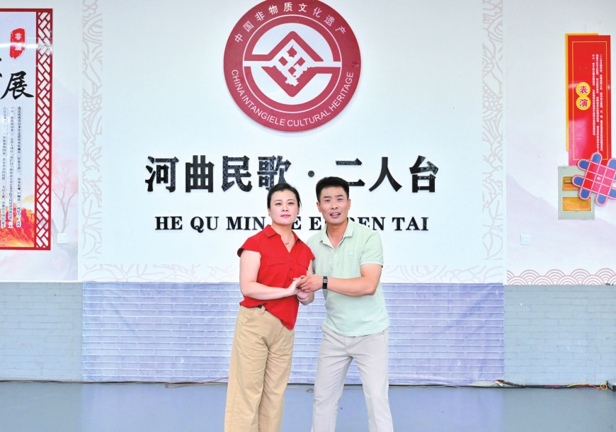 走進河曲縣白樸公園,一段清亮婉轉的唱腔便隨風入耳——河曲縣民歌二人臺藝術團演員鄔光正和同事們全情投入,打磨大型非遺音樂劇《大河長歌》。他額角滲著細密的汗珠,當唱到“好兒女今日唱長歌,勝過了前輩了不得”時,突然停了下來,對搭檔說:“再來一遍,剛才那口氣沒頂滿?!边@份對細節(jié)的較真,藏著他對二人臺藝術最樸素也最深厚的敬畏。